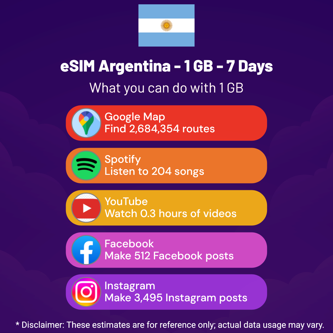 Hello, Globetrotter! 🚀 Gearing up for a journey to the world’s hidden gem, Argentina? Let our 1 GB – 7 Days eSIM be your reliable digital ally, ensuring you remain connected at every step!