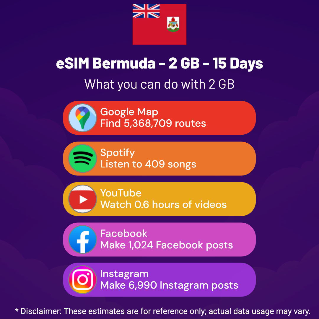 Hello, Globetrotter! 🚀 Gearing up for a journey to the world’s hidden gem, Bermuda? Let our 2 GB – 15 Days eSIM be your reliable digital ally, ensuring you remain connected at every step!