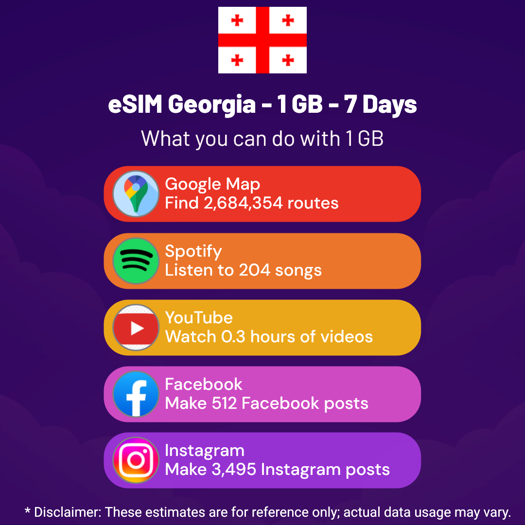 Hello, Globetrotter! 🚀 Gearing up for a journey to the world’s hidden gem, Georgia? Let our 1 GB – 7 Days eSIM be your reliable digital ally, ensuring you remain connected at every step!