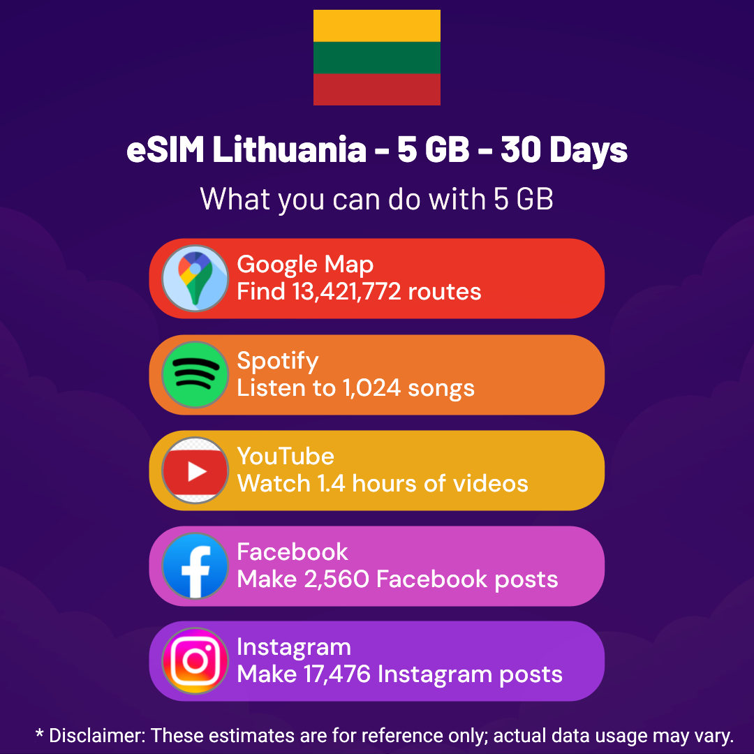 Hello, Globetrotter! 🚀 Gearing up for a journey to the world’s hidden gem, Lithuania? Let our 5 GB – 30 Days eSIM be your reliable digital ally, ensuring you remain connected at every step!