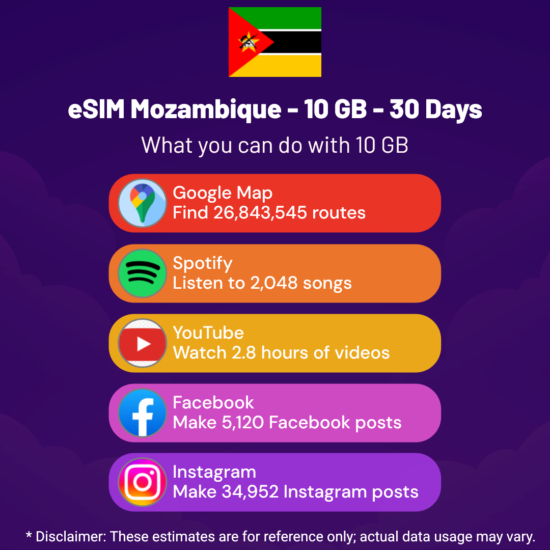Hello, Globetrotter! 🚀 Gearing up for a journey to the world’s hidden gem, Mozambique? Let our 10 GB – 30 Days eSIM be your reliable digital ally, ensuring you remain connected at every step!