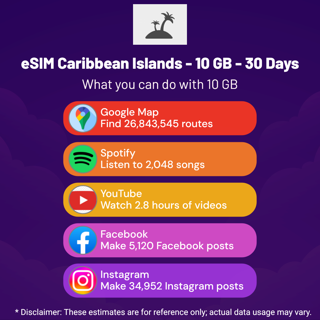 eSIM Caribbean Islands – 10 GB – 30 Days