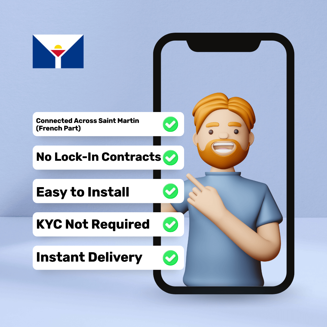 ✔️ Networks: Our Saint Martin (French Part) eSIM syncs with local network providers, ensuring uninterrupted coverage.