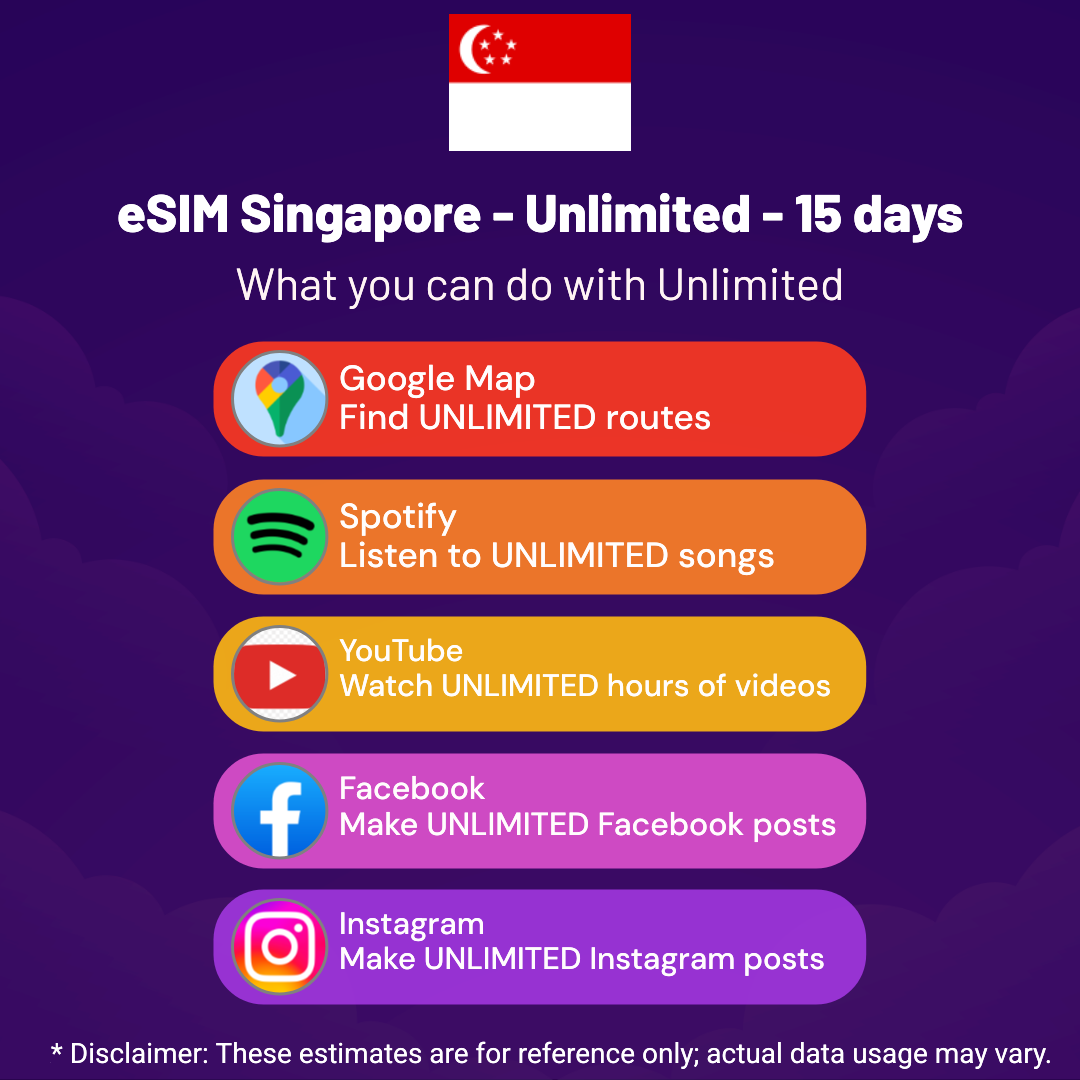 eSIM Singapore – Unlimited – 15 days