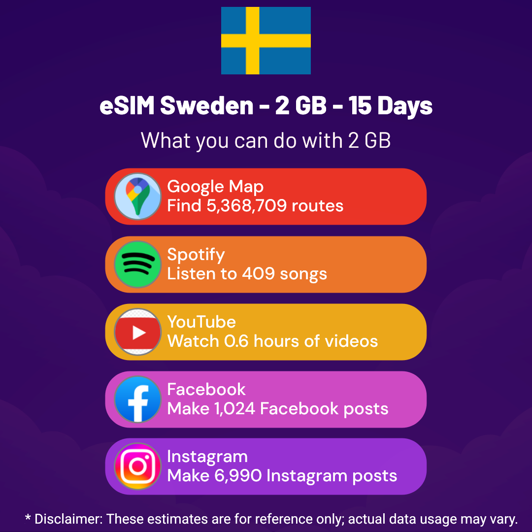 Hello, Globetrotter! 🚀 Gearing up for a journey to the world’s hidden gem, Sweden? Let our 2 GB – 15 Days eSIM be your reliable digital ally, ensuring you remain connected at every step!