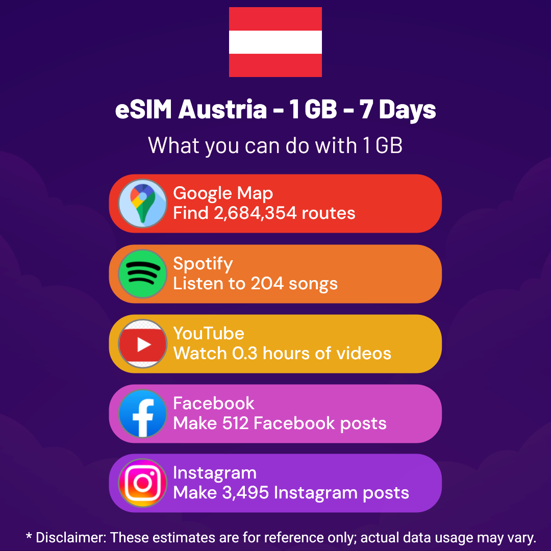 Hello, Globetrotter! 🚀 Gearing up for a journey to the world’s hidden gem, Austria? Let our 1 GB – 7 Days eSIM be your reliable digital ally, ensuring you remain connected at every step!
