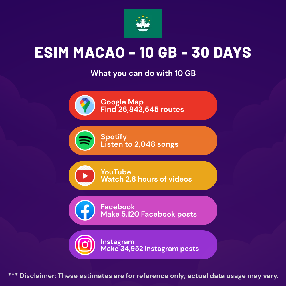 eSIM Macao – 10 GB – 30 Days