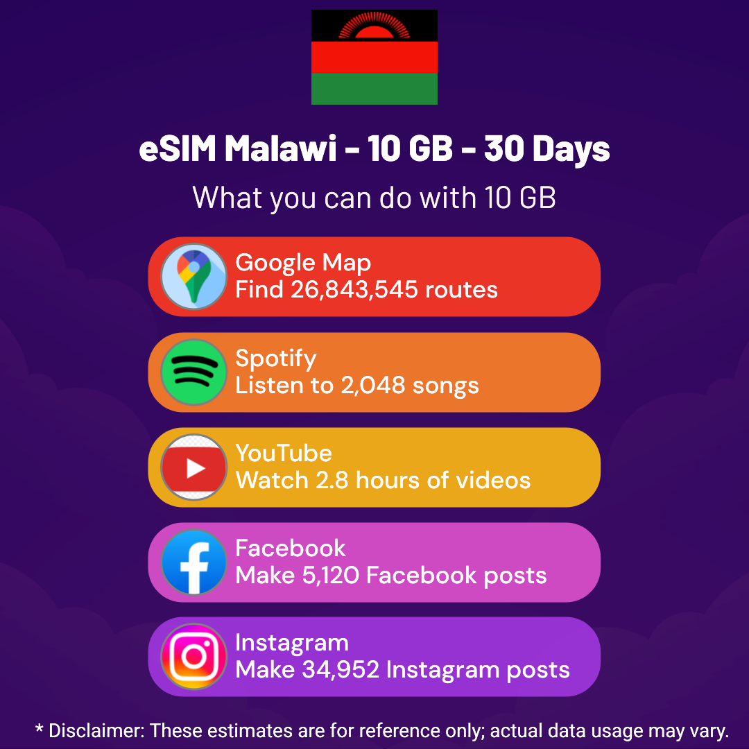 Hello, Globetrotter! 🚀 Gearing up for a journey to the world’s hidden gem, Malawi? Let our 10 GB – 30 Days eSIM be your reliable digital ally, ensuring you remain connected at every step!