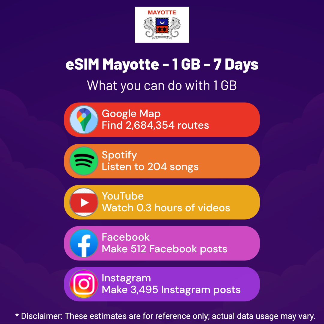 Hello, Globetrotter! 🚀 Gearing up for a journey to the world’s hidden gem, Mayotte? Let our 1 GB – 7 Days eSIM be your reliable digital ally, ensuring you remain connected at every step!