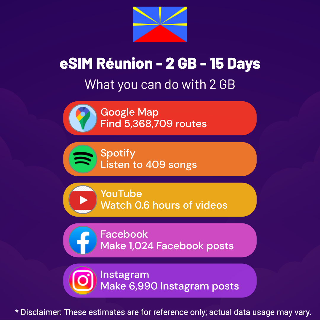 Hello, Globetrotter! 🚀 Gearing up for a journey to the world’s hidden gem, Réunion? Let our 2 GB – 15 Days eSIM be your reliable digital ally, ensuring you remain connected at every step!