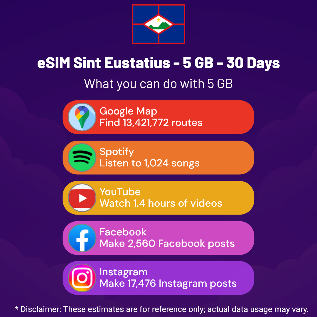 Hello, Globetrotter! 🚀 Gearing up for a journey to the world’s hidden gem, Sint Eustatius? Let our 5 GB – 30 Days eSIM be your reliable digital ally, ensuring you remain connected at every step!