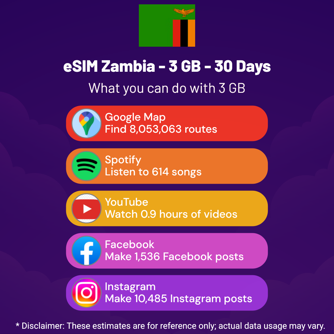 Hello, Globetrotter! 🚀 Gearing up for a journey to the world’s hidden gem, Zambia? Let our 3 GB – 30 Days eSIM be your reliable digital ally, ensuring you remain connected at every step!