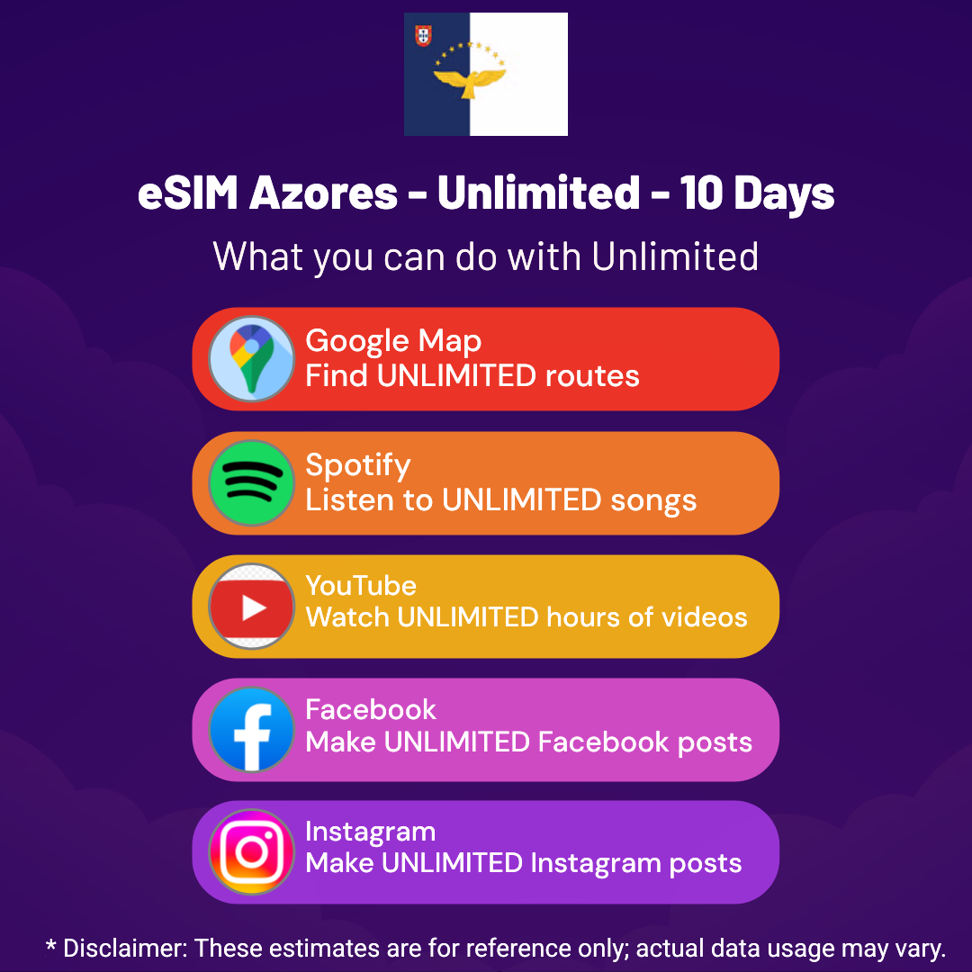 eSIM Azores – Unlimited – 10 days
