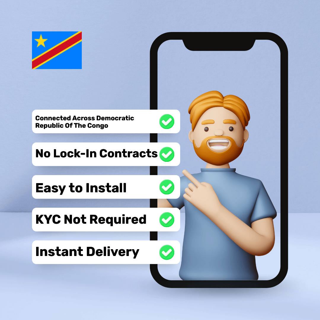 โ๏ธ Networks: Our Democratic Republic Of The Congo eSIM syncs with local network providers, ensuring uninterrupted coverage.