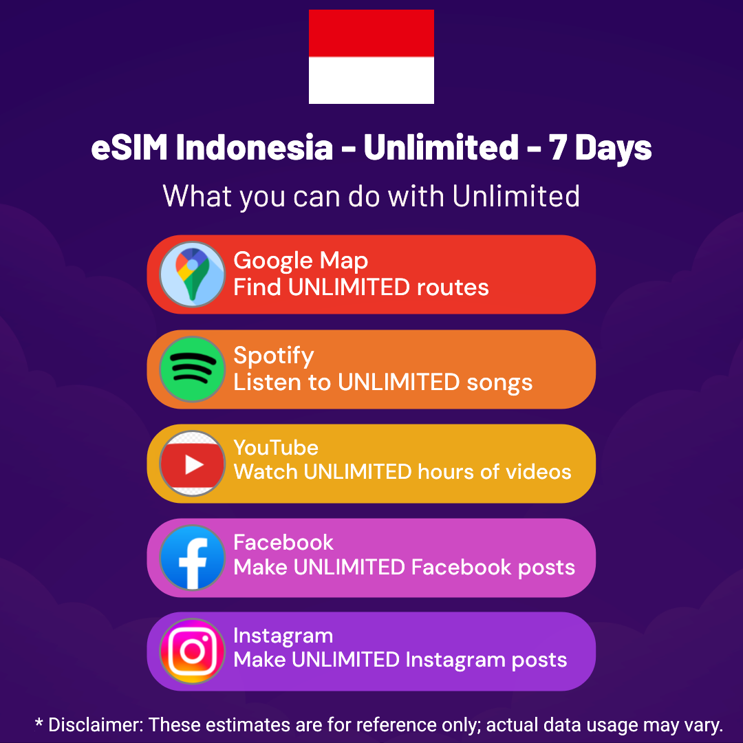 Hello, Globetrotter! ๐ Gearing up for a journey to the world’s hidden gem, Indonesia? Let our Unlimited – 7 Days eSIM be your reliable digital ally, ensuring you remain connected at every step!