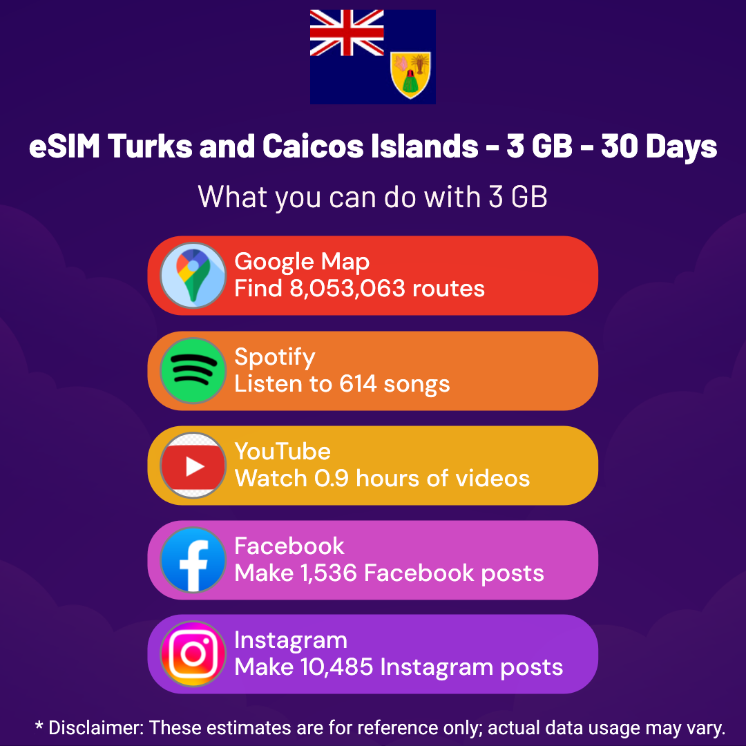 Hello, Globetrotter! ๐ Gearing up for a journey to the world’s hidden gem, Turks and Caicos Islands? Let our 3 GB – 30 Days eSIM be your reliable digital ally, ensuring you remain connected at every step!