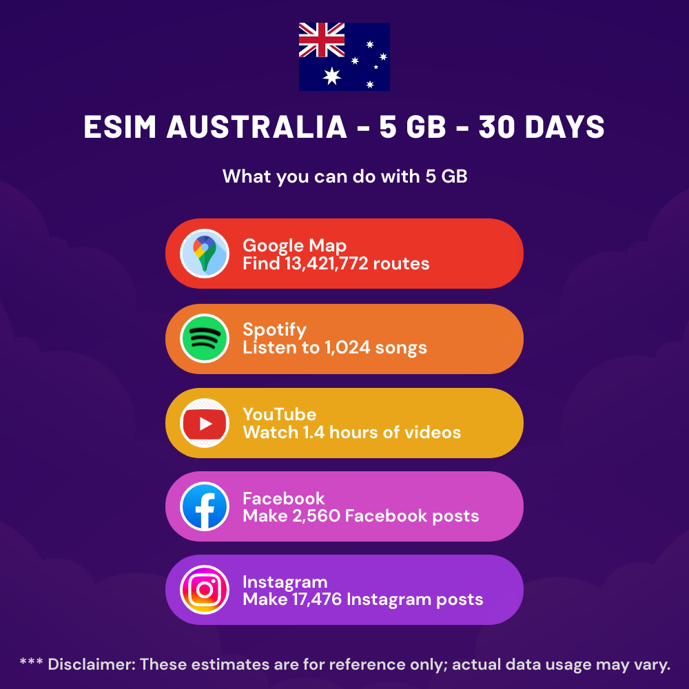 Hello, Globetrotter! 🚀 Gearing up for a journey to the world’s hidden gem, Australia? Let our 5 GB – 30 days eSIM be your reliable digital ally, ensuring you remain connected at every step!