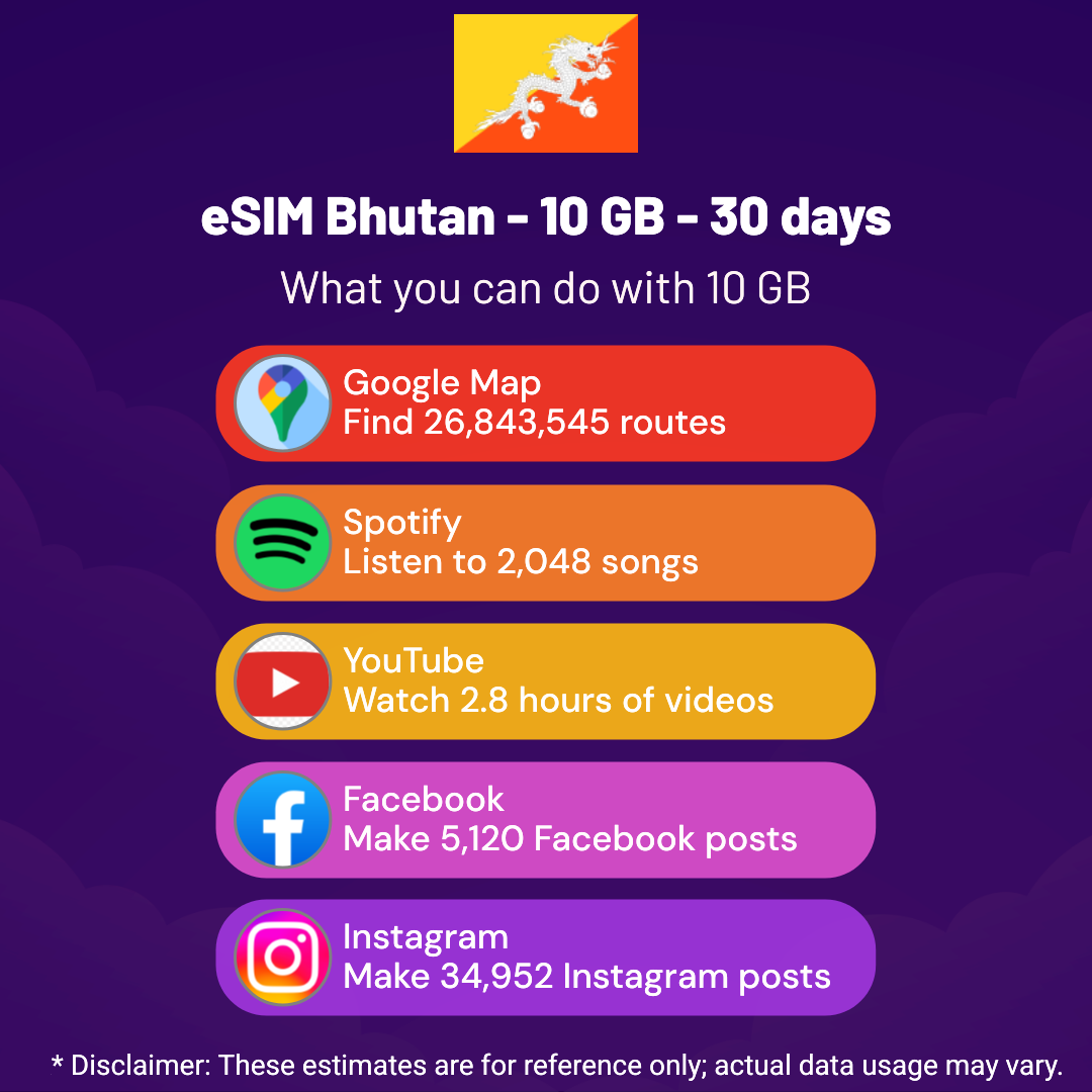 Hello, Globetrotter! 🚀 Gearing up for a journey to the world’s hidden gem, Bhutan? Let our 10 GB – 30 days eSIM be your reliable digital ally, ensuring you remain connected at every step!