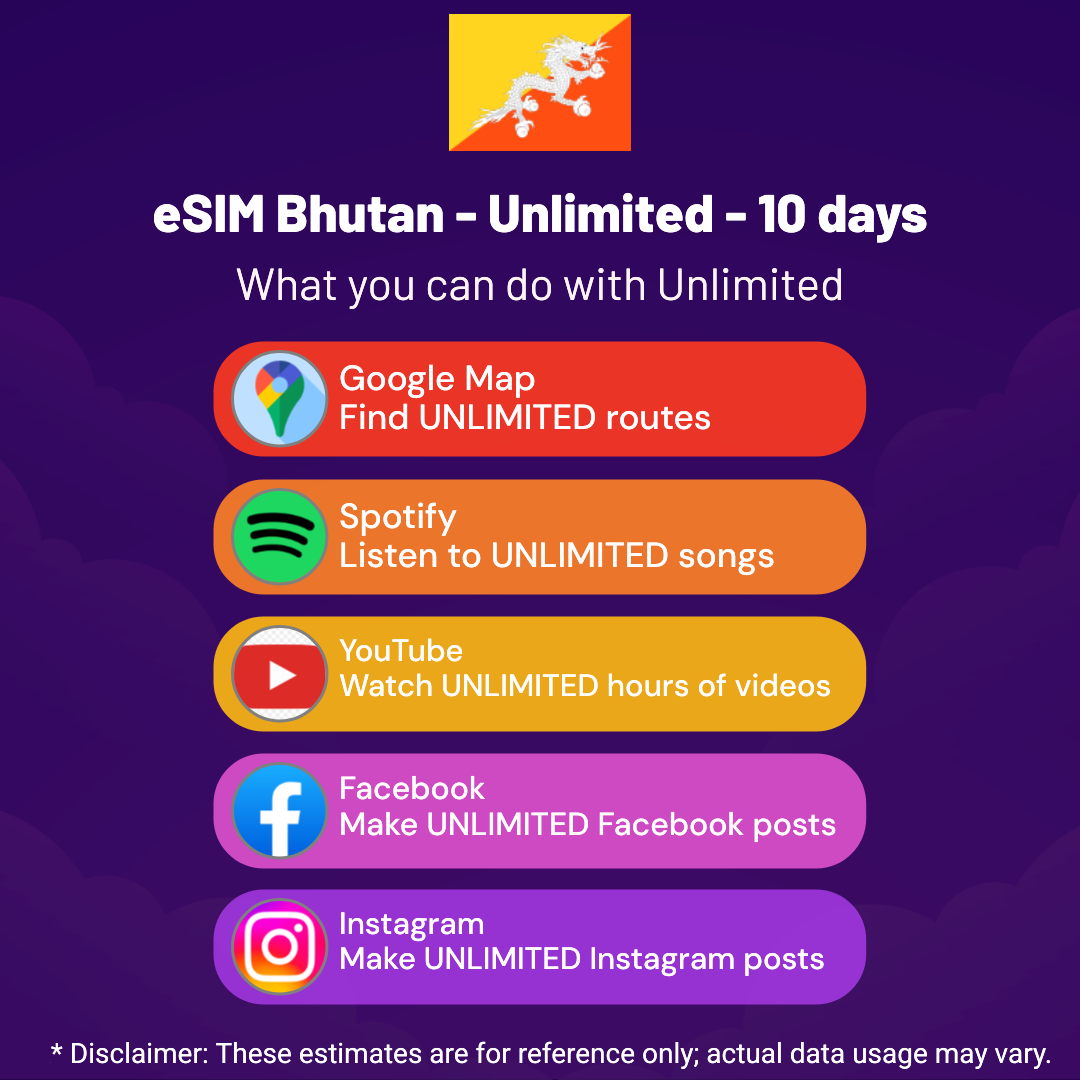 Hello, Globetrotter! 🚀 Gearing up for a journey to the world’s hidden gem, Bhutan? Let our Unlimited – 10 days eSIM be your reliable digital ally, ensuring you remain connected at every step!