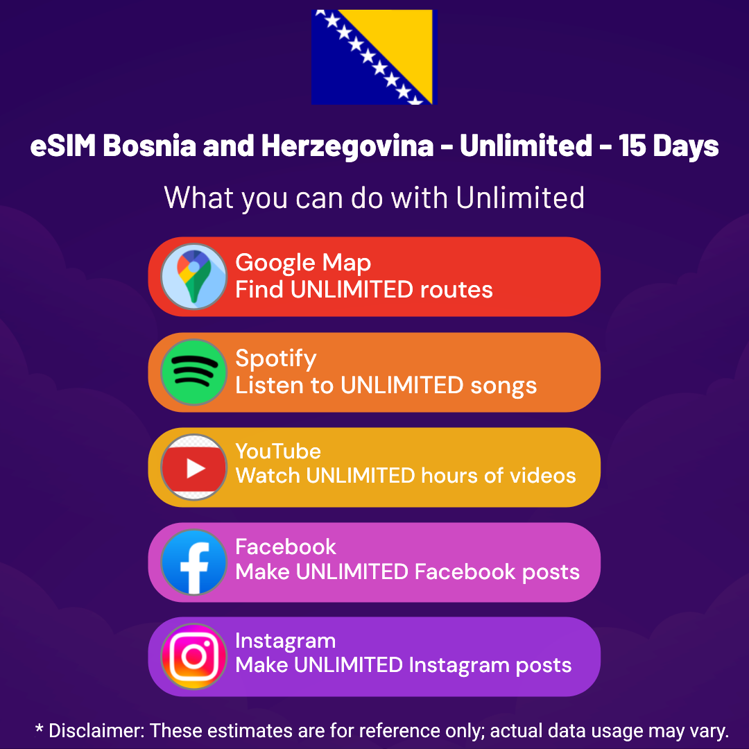 Hello, Globetrotter! 🚀 Gearing up for a journey to the world’s hidden gem, Bosnia and Herzegovina? Let our Unlimited – 15 Days eSIM be your reliable digital ally, ensuring you remain connected at every step!