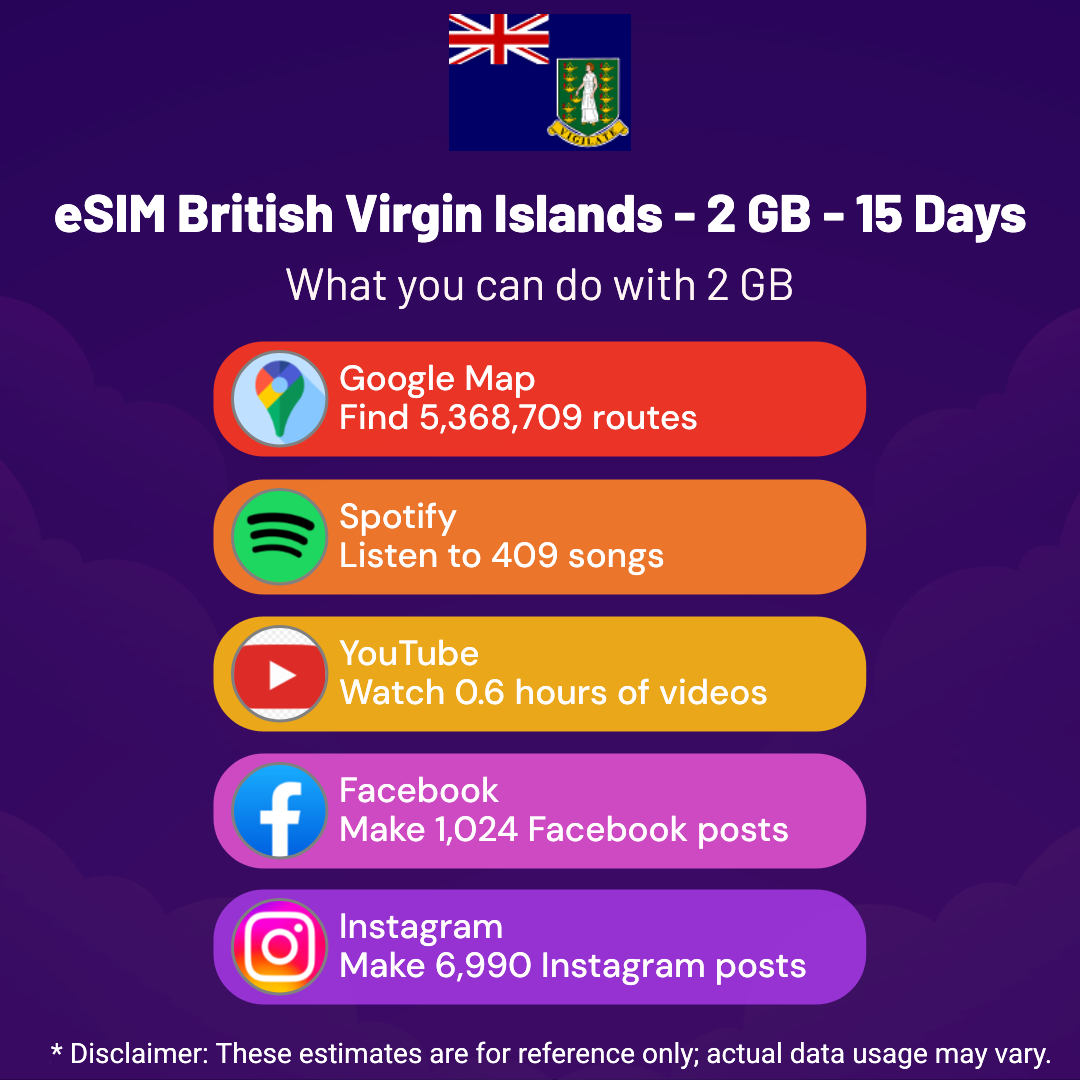 Hello, Globetrotter! 🚀 Gearing up for a journey to the world’s hidden gem, British Virgin Islands? Let our 2 GB – 15 Days eSIM be your reliable digital ally, ensuring you remain connected at every step!
