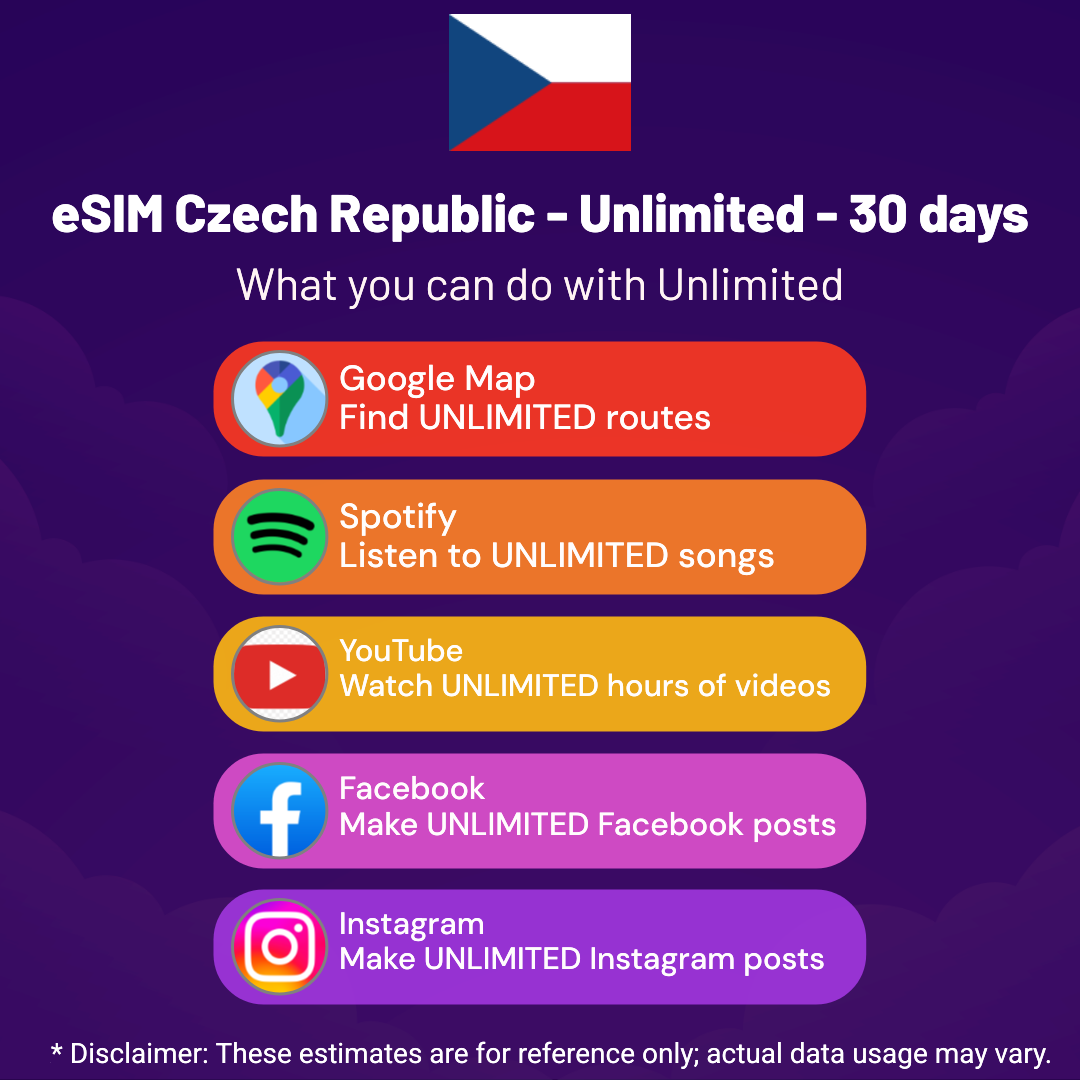 Hello, Globetrotter! 🚀 Gearing up for a journey to the world’s hidden gem, Czech Republic? Let our Unlimited – 30 Days eSIM be your reliable digital ally, ensuring you remain connected at every step!