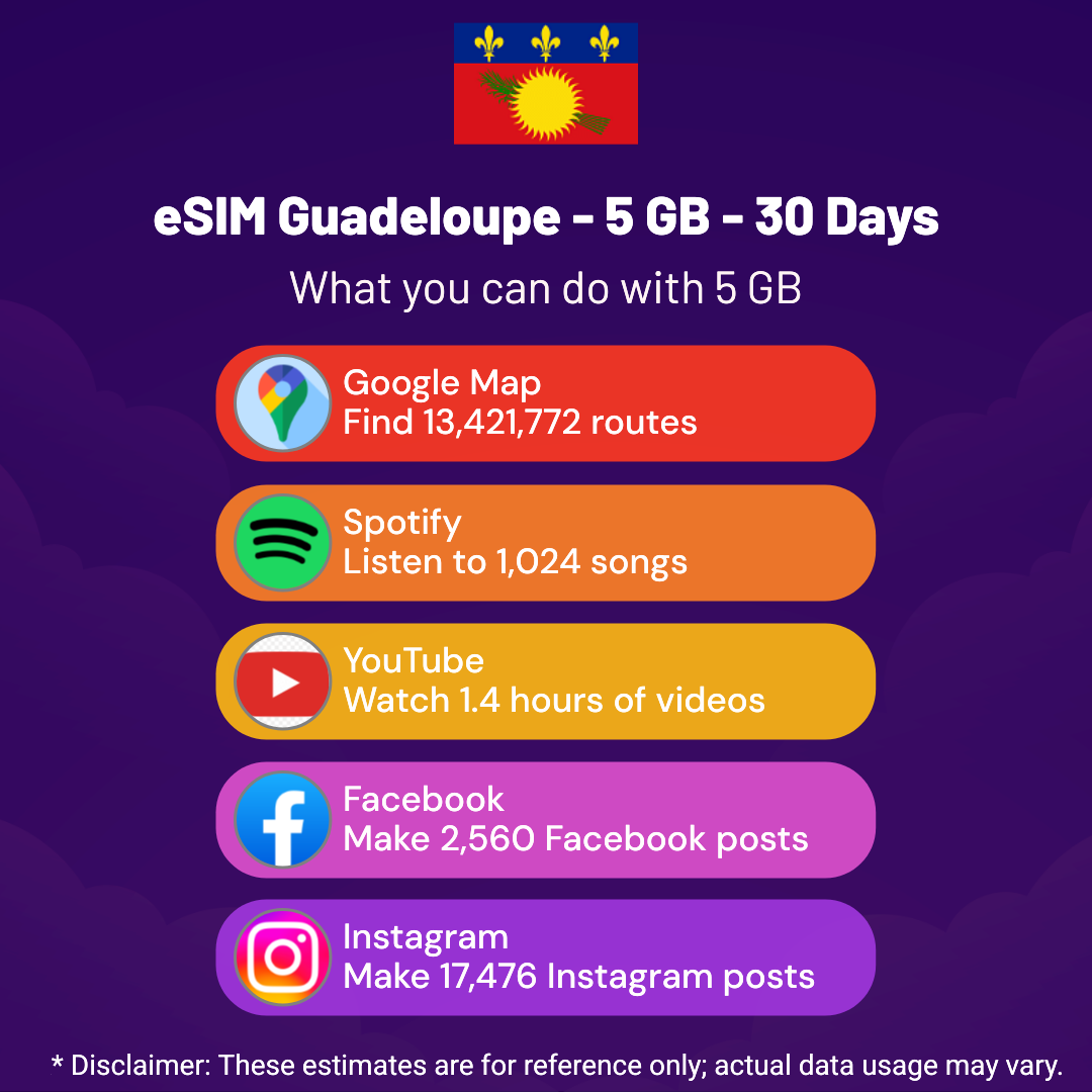 Hello, Globetrotter! 🚀 Gearing up for a journey to the world’s hidden gem, Guadeloupe? Let our 5 GB – 30 Days eSIM be your reliable digital ally, ensuring you remain connected at every step!