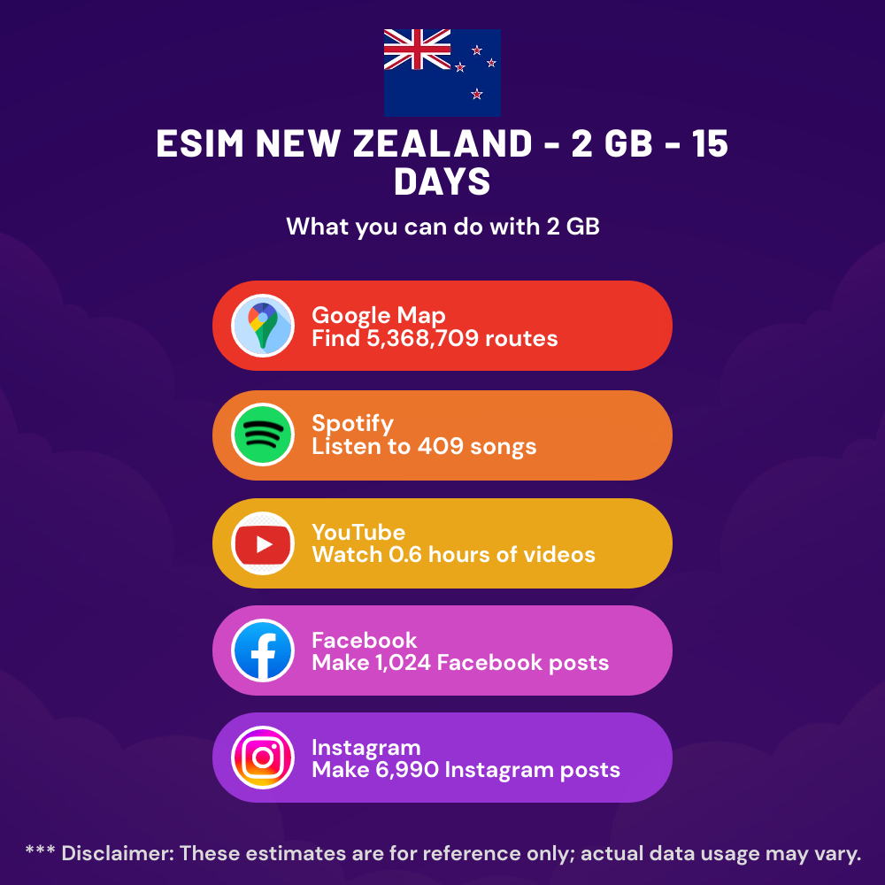Hello, Globetrotter! 🚀 Gearing up for a journey to the world’s hidden gem, New Zealand? Let our 2 GB – 15 Days eSIM be your reliable digital ally, ensuring you remain connected at every step!
