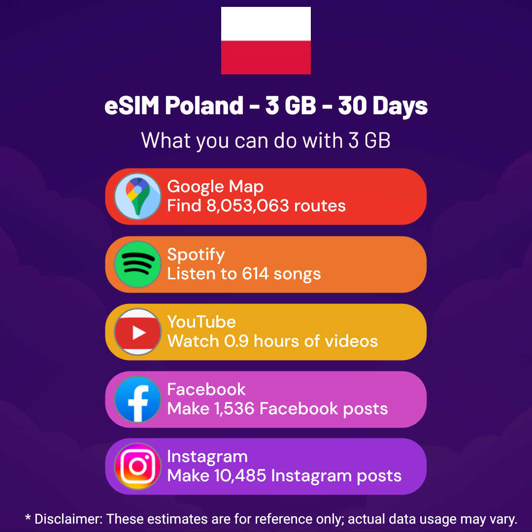 Hello, Globetrotter! 🚀 Gearing up for a journey to the world’s hidden gem, Poland? Let our 3 GB – 30 Days eSIM be your reliable digital ally, ensuring you remain connected at every step!