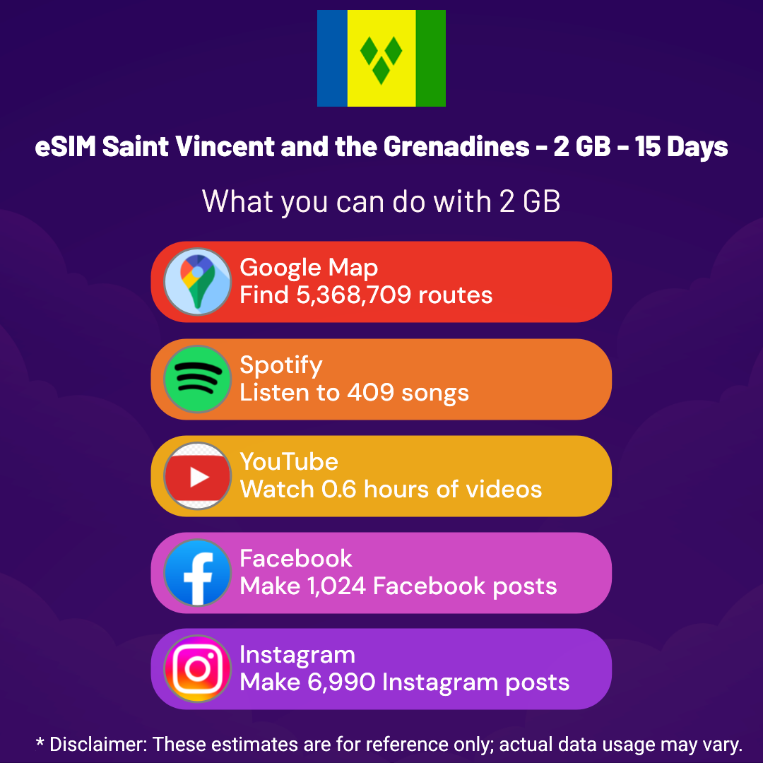 eSIM Saint Vincent and the Grenadines – 2 GB – 15 Days
