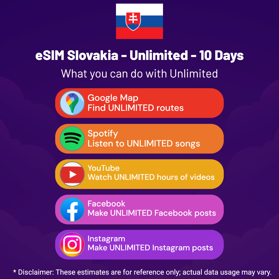 Hello, Globetrotter! 🚀 Gearing up for a journey to the world’s hidden gem, Slovakia? Let our Unlimited – 10 Days eSIM be your reliable digital ally, ensuring you remain connected at every step!