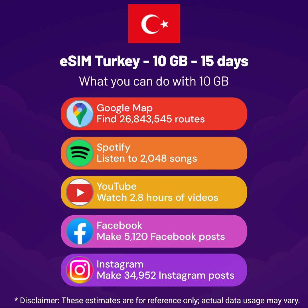 Hello, Globetrotter! 🚀 Gearing up for a journey to the world’s hidden gem, Turkey? Let our 10 GB – 15 days eSIM be your reliable digital ally, ensuring you remain connected at every step!