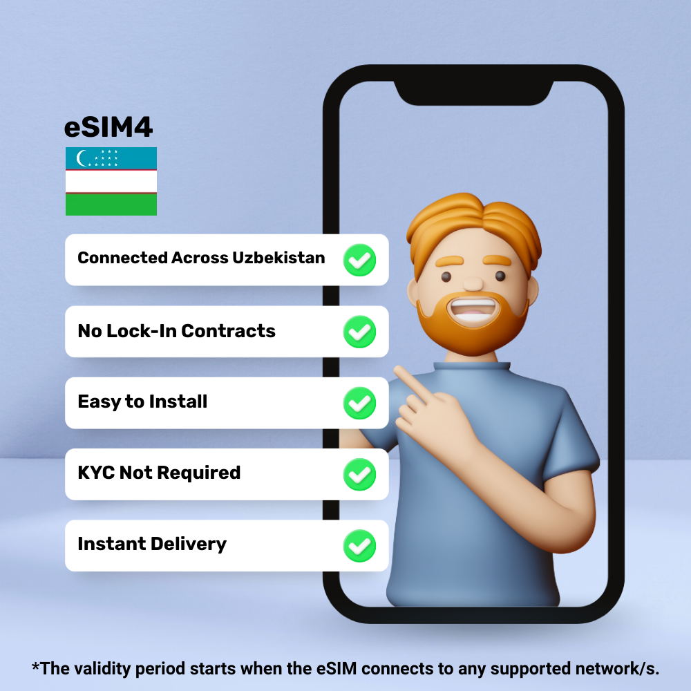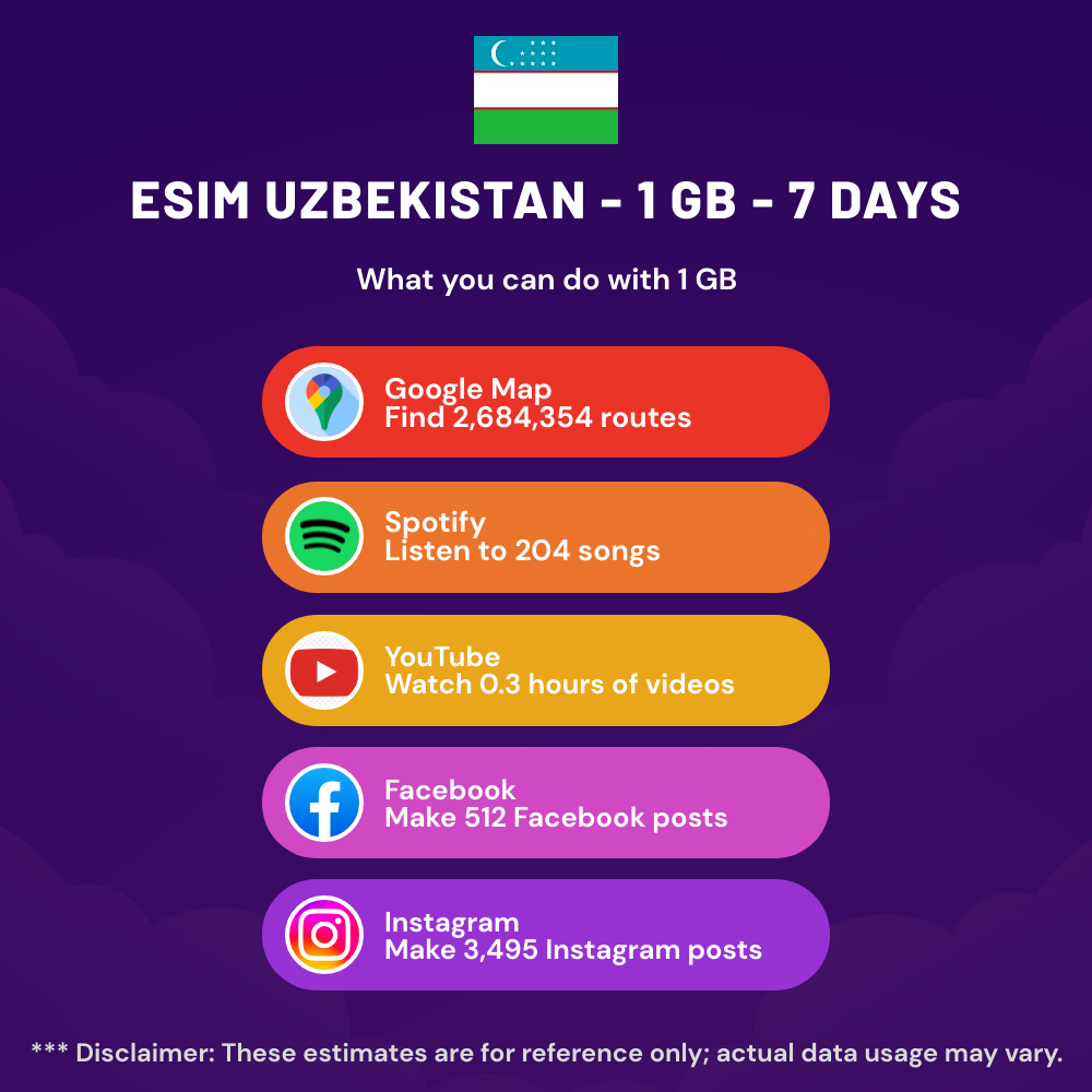 Hello, Globetrotter! 🚀 Gearing up for a journey to the world’s hidden gem, Uzbekistan? Let our 1 GB – 7 days eSIM be your reliable digital ally, ensuring you remain connected at every step!