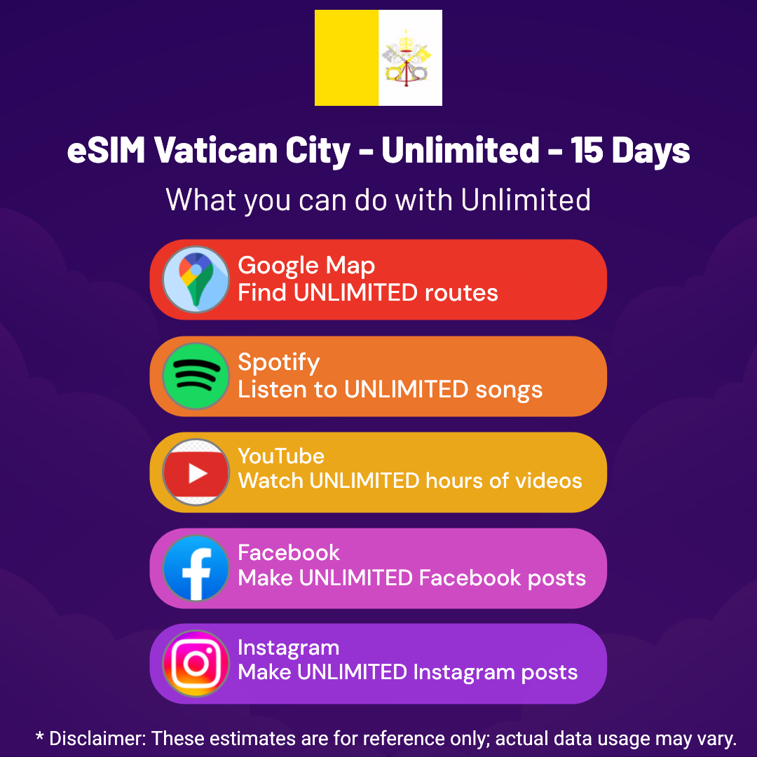 Hello, Globetrotter! 🚀 Gearing up for a journey to the world’s hidden gem, Vatican City? Let our Unlimited – 15 Days eSIM be your reliable digital ally, ensuring you remain connected at every step!