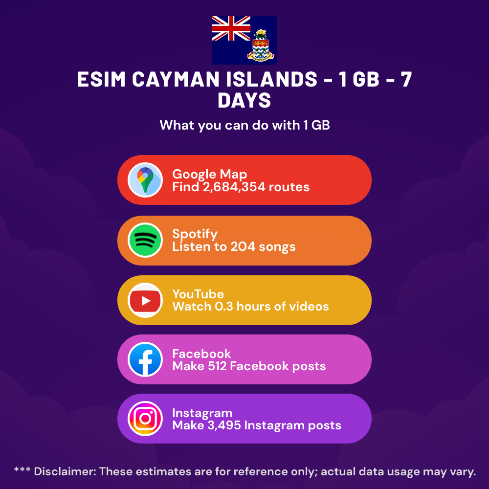 eSIM Cayman Islands – 1 GB – 7 days