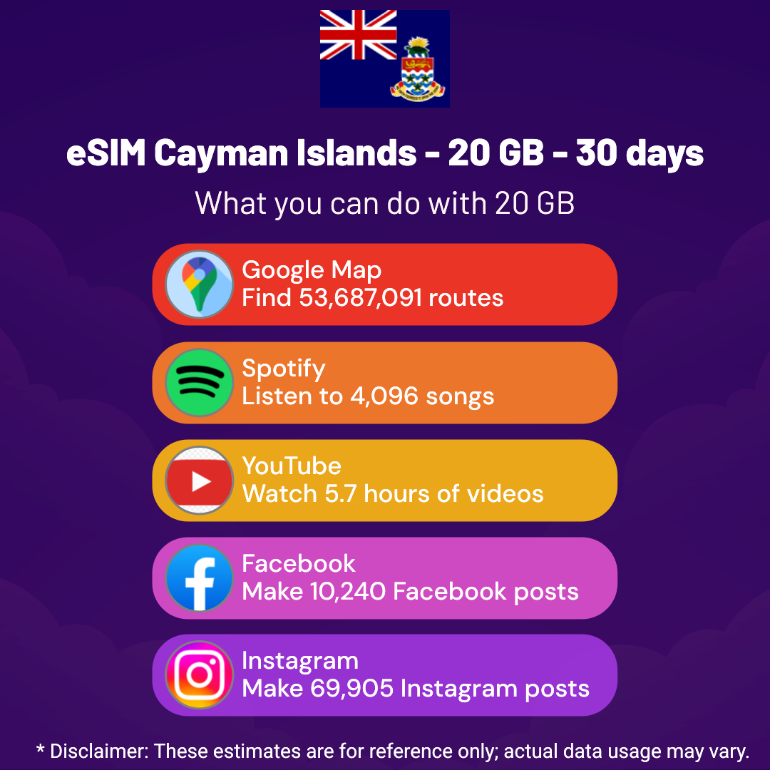 eSIM Cayman Islands – 20 GB – 30 days