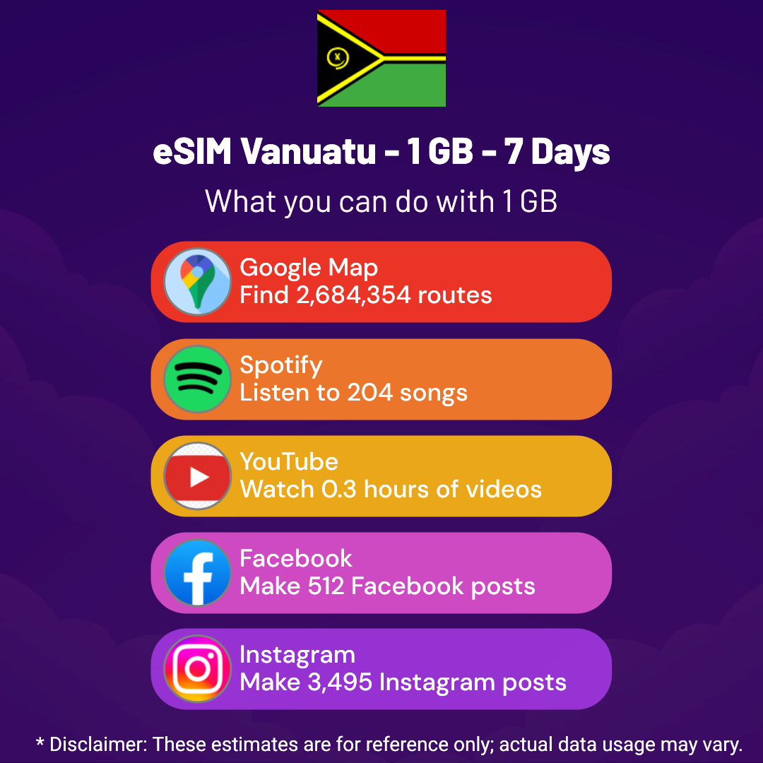 Hello, Globetrotter! 🚀 Gearing up for a journey to the world’s hidden gem, Vanuatu? Let our 1 GB – 7 Days eSIM be your reliable digital ally, ensuring you remain connected at every step!